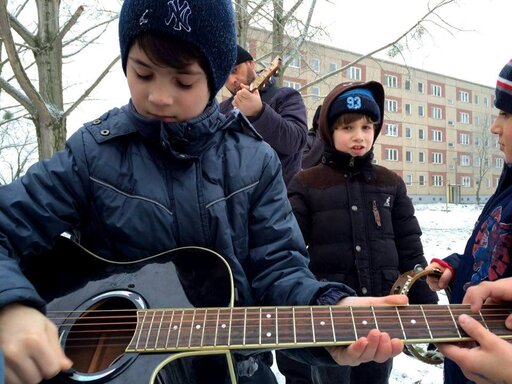 Silence… To break it, we started playing music in the yard. Tom was singing and it was just beautiful. We blew ballons, hula-hooped, made noise… We must have looked a little ridiculous or even desperate, but we had so much fun with each other that we knew that real joy must spread and grow. A few children stood up in the windows but they were not even smiling– just staring. It took time. Building trust takes time. Time is the most beautiful gift we can offer to people.