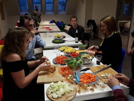I woke up on my own on Christmas morning. Having decided that this would be the year I experimented with having a Christmas in Berlin, I had forfeited spending time with my family in the UK and all the normal traditions that we follow every year. I have to admit it was quite a sad moment, opening presents by myself, having a little drink of champagne with no one to wish a Happy Christmas to. For the first few hours of Christmas day I really regretted my decision to have a Berlin Christmas. Luckily, I had kept one tradition – the stress of trying to cook Christmas dinner. But this was not an ordinary Christmas dinner, this was a Refugee Cooking Group Christmas dinner. Lucy and I had braved the supermarket on Christmas Eve and bought a trolley full of vegetables, chicken, rice and drinks in preparation, waiting for over half an hour in the queue during the last minute rush before the shops shut for the festive period.