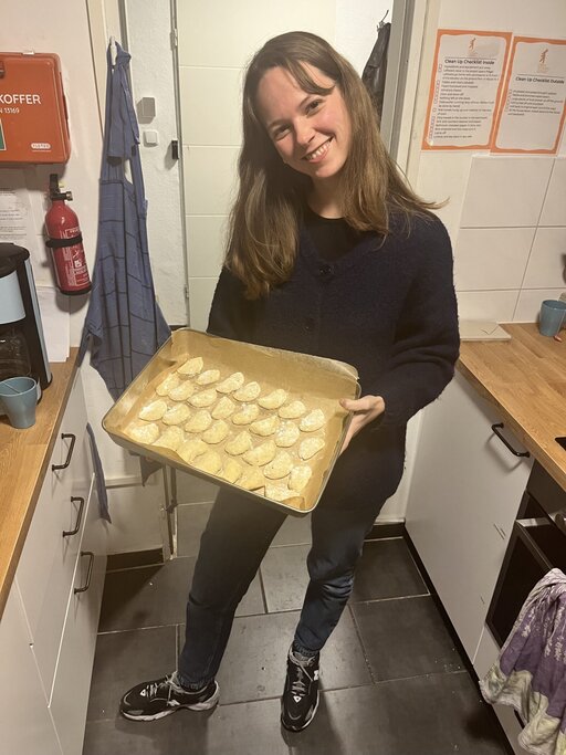 Dieses Jahr reise ich mit einem Koffer voller Lebkuchen und Bourbon-Vanillezucker zurück nach Barcelona, bereit, wieder in unsere Familientraditionen einzutauchen. Doch bevor es so weit ist, starte ich die Weihnachtssaison vorab, indem ich gemeinsam mit Ricarda, Sofia und Lauren in unserem gemütlichen Projektraum Vanillekipferl backe – eine neue Variante einer alten Tradition, die sich genauso besonders anfühlt.