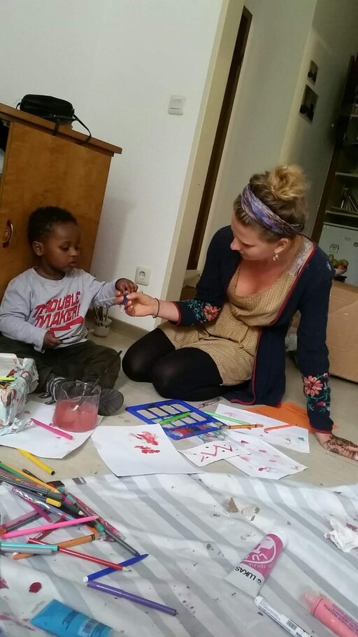 Every week is different. There are some things that happen every week, like individual therapy sessions with clients and with consulting volunteers. Every week I also visit or organise a workshop in different micro-groups within Open Art Shelter, either with families from Tempelhof Camp, shelters in Lichtenberg or Haarlemer Strasse. But, as we are developing according to the needs as we find them, the work tends to be very organic and dynamic.
