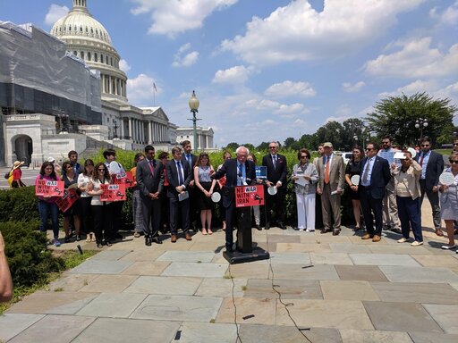 Jamie (pictured left) partaking in an anti-Iran War rally (featuring Senator Sanders) and other US lawmakers. Source: J Street.