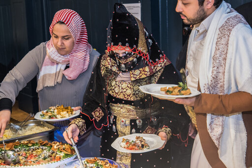 Special thanks to our Yemeni volunteers who organised and cooked the food, traditional Yemeni decor and dresses and helped with the set-up, as well as to all the volunteers who came, cleaned, set-up and worked tirelessly behind the bar! Of course, this night wouldn’t have been complete without delicious pancakes provided by Willem from Pancake Adventures and fresh, creamy hummus by Darem from Assli Hummus.