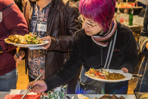 We’d like to thank everyone for making this Community Team Up so bright, vibrant and delicious! Featuring everything from vegetarian Arabic/Yemeni food, to delicious pancakes, our Yemeni members showing off their best traditional dresses, and music performances by community members from Refugio and GSBTB. The goal of this Team Up was to showcase and celebrate the diversity of the GSBTB community – and this night really showcased how talented Berlin’s migrants are!