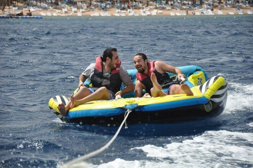 Before rubber boats became a symbol of strife and associated with the dangerous journey refugees made over the seas, they were still what you used to have good time on when you were travelling in the summer. Waël in Egypt in 2013. Source: Private.