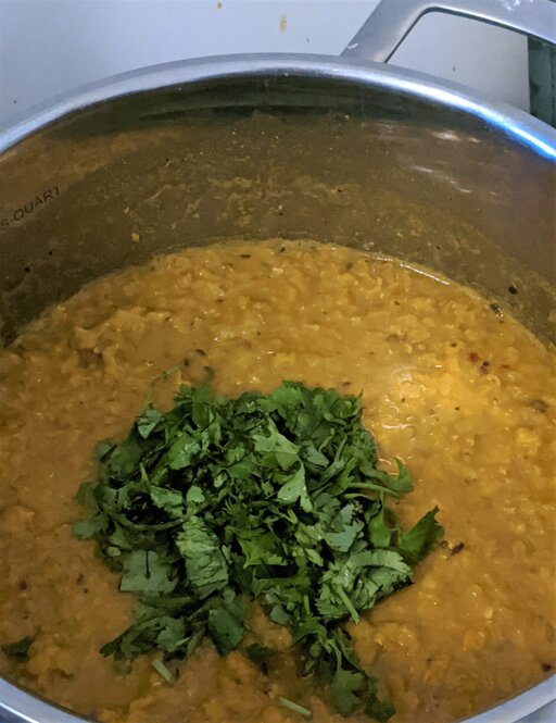 Garnish the daal with fresh coriander and the fried garlic and onions. Serve while hot.