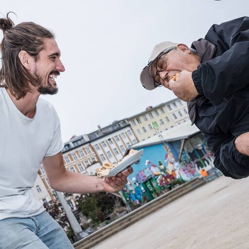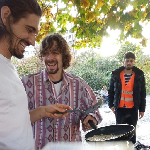 Sharing pancakes with Görlitzer Park regulars. Source: (