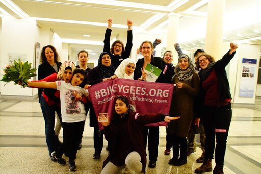 Yes we won the ‘Hatin Sürücü’ women’s rights prize for female empowerment. Fifteen projects were nominated in total, so we are very proud to have won. The award was originally commissioned by the Green party, in memory of a young woman who died in Berlin at the hands of her family, after trying to break out on her own, so it is very fitting for what we try and do with #BIKEYGEES.