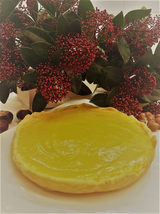 Line a tart case or 20cm cake tin with baking paper. Roll out the pastry so that it covers the base of the tin and goes up the side for about 3cm. Chill for 30 min. Preheat the oven to 180C. Remove the pastry for the fridge and cover with baking paper and cover with dried beans or lentils to blind bake in the oven for about 15 minutes. Remove from the oven and take off the layer of beans. And bake for another 5 minutes. Add the lemon curd to the pastry case and bake for another 20 minutes until set.