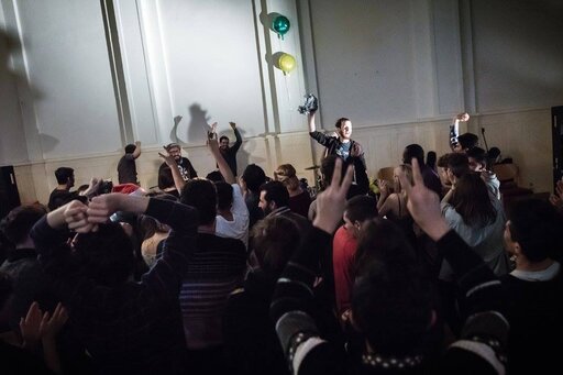 A huge crowd gathered at the GSBTB Christmas party to hear Aeham and others jamming.