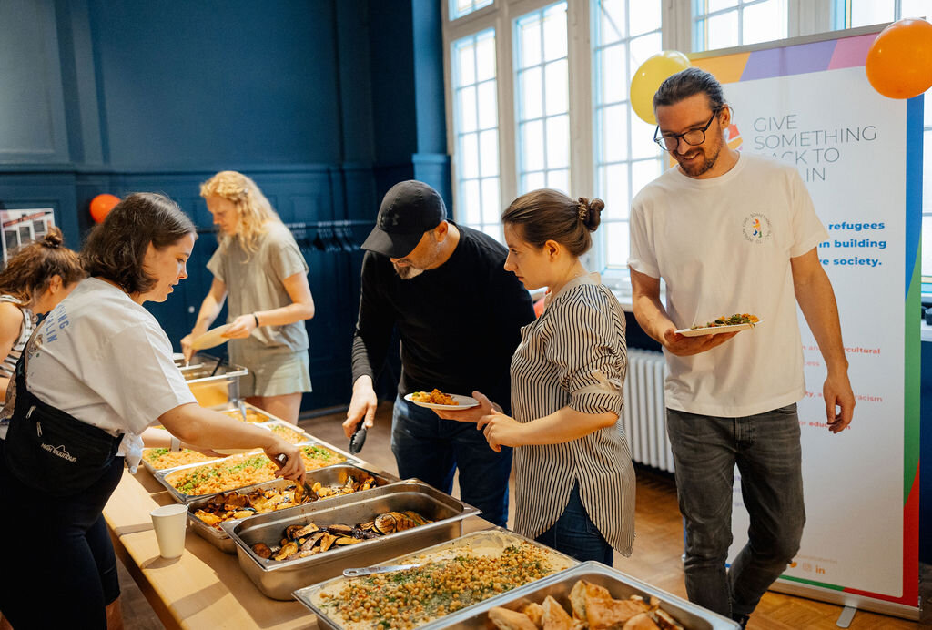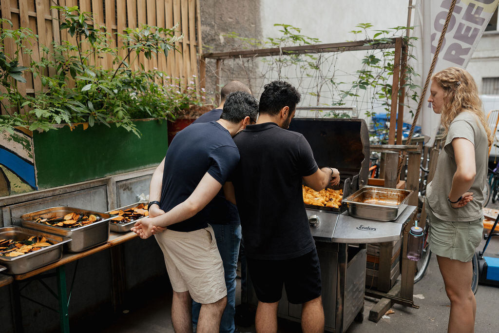 The backyard of Refugio was swarming with people on this sweaty Thursday afternoon. But it was not just an ordinary day for us. On the ground floor, posters were hanging all around announcing: Give Something Back to Berlin is ten years old, and we are celebrating our anniversary today!