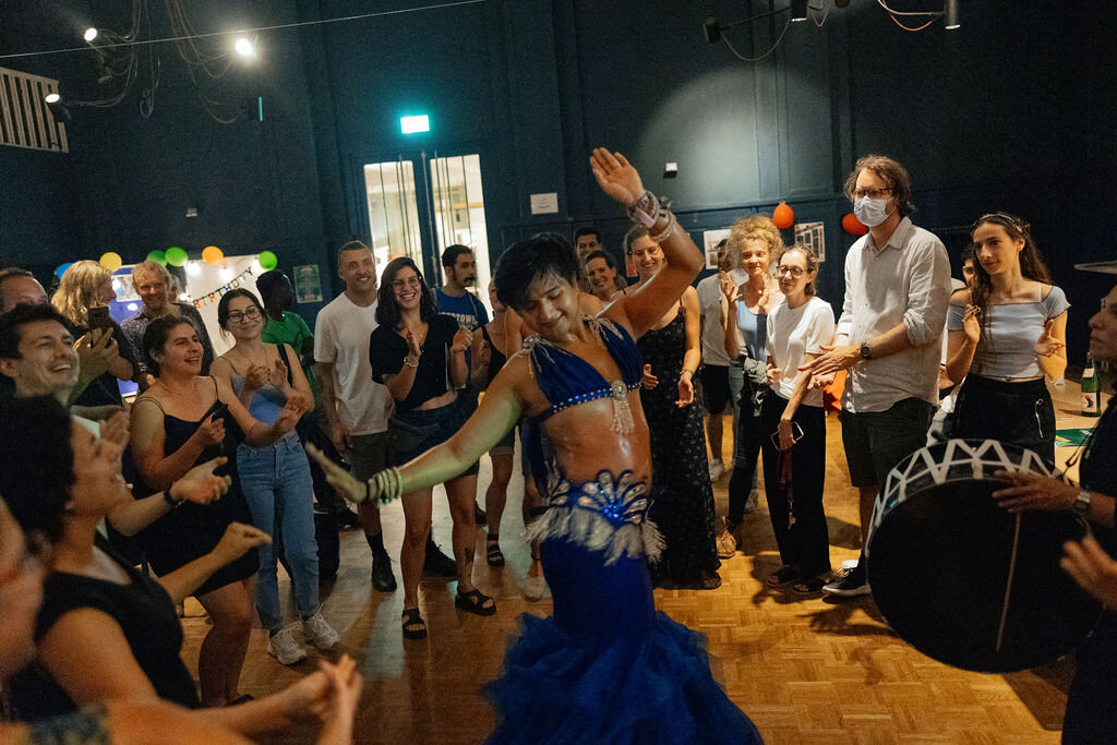 The rest of the evening was about excellent music and performances. The concert of the Open Music School was followed by the dance show of Elisa Elli, hip hop artist Breezy, and the finale was a show by belly dancer Prince Emrah, who turned Refugio’s hall into the wildest dancefloor of Neukölln for half an hour. Luckily, a storm was approaching Berlin by the time the party ended, and a nice cool wind received our friends who left the building after this hot and intense evening.
