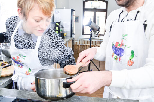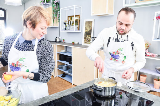 Anas is a doer, just like me. We are the same age. He wants to build a new life for himself and is looking to the future. He is working hard to learn German and is searching for a job in his old profession. He hates sitting around and waiting; it makes him nervous and seems extremely wasteful to him. That I can completely understand. What helps him is cooking. He first got really into it when he had to leave his home country. “Cooking gives me a sense of security and eating makes me happy,” he says.
