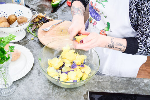 - 1 kg waxy potatoes (also some purple ones, such as Blue Swede)