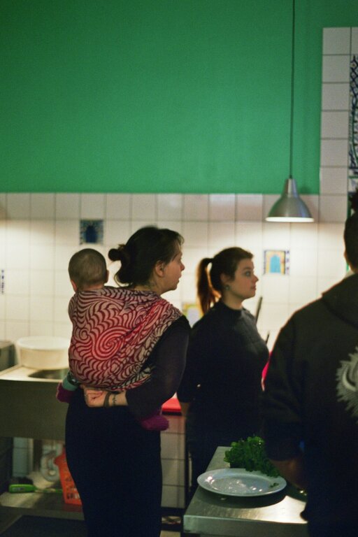 The Kita crisis didn’t affect us quite as badly as it affected others. Neither my partner nor I work full-time and honestly, I just bring the baby to work most of the time. Obviously this was much easier when he was smaller and would just sleep wrapped up on my back all day. But even now, he still loves coming to the cooking events and eating Indonesian, Swedish, and Egyptian food with us. By now, he knows Refugio like the back of his hand and probably thinks it’s his living room.