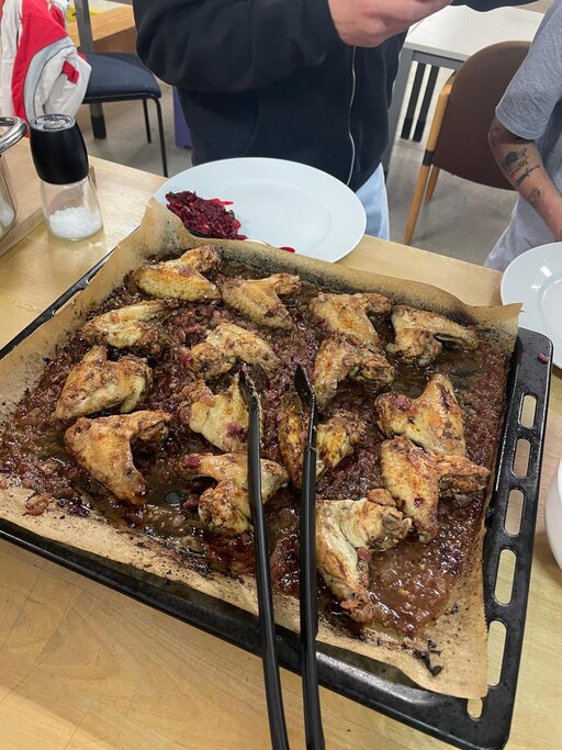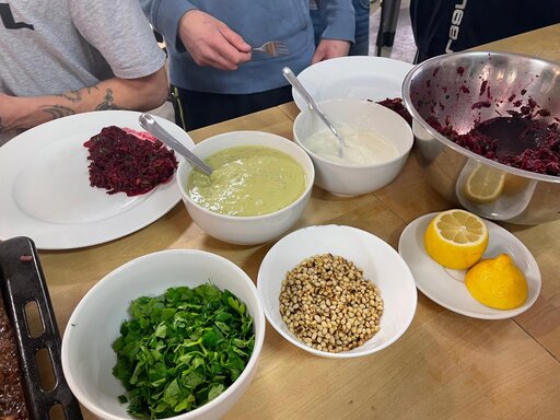 The act of cooking together has become a way of navigating this. On one Saturday, we prepared a simple menu: roast chicken with za’atar, beetroot salad with green tahini, and oatmeal cookies. Language often remains a barrier, but the process of cooking introduces another form of communication. Tasks are shared without much explanation; gestures replace words; attention shifts from speaking to doing. Gradually, a sense of ease begins to form.